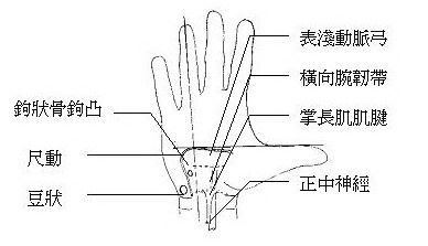 - 表淺掌動脈弓(superficial palmar arch)。