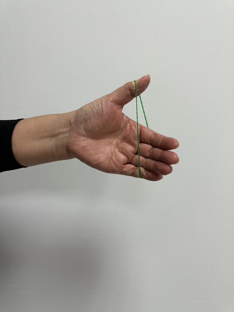 將橡皮筋套至手指-->緩慢撐開手指,感受橡皮筋的張力