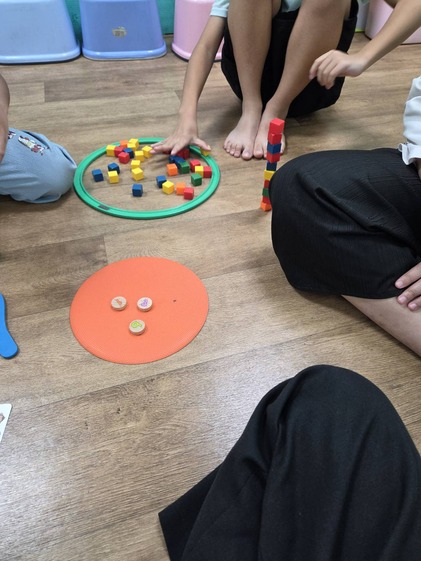 包括視覺搜尋、工作記憶及手部的穩定性、點數等能力都是這個活動會訓練到的歐~孩子可能會忘記自己數過的顏色、或知道動物命名但不會計數字數或積木一直倒塌等,家長們可以再針對孩子的個別狀況加強練習,或與治療師討論相關活動!