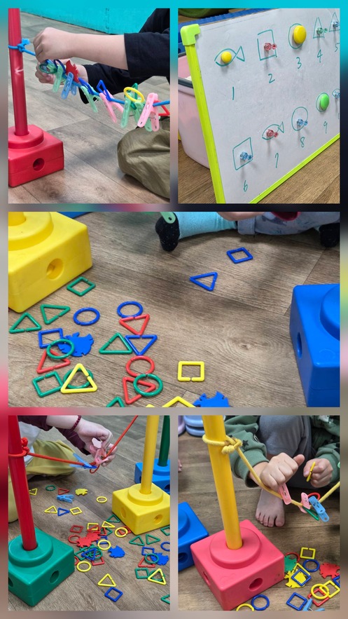 ▪︎將線兩端固定在孩子能夾取的高度,準備好欲練習的材料,就可以開始活動!