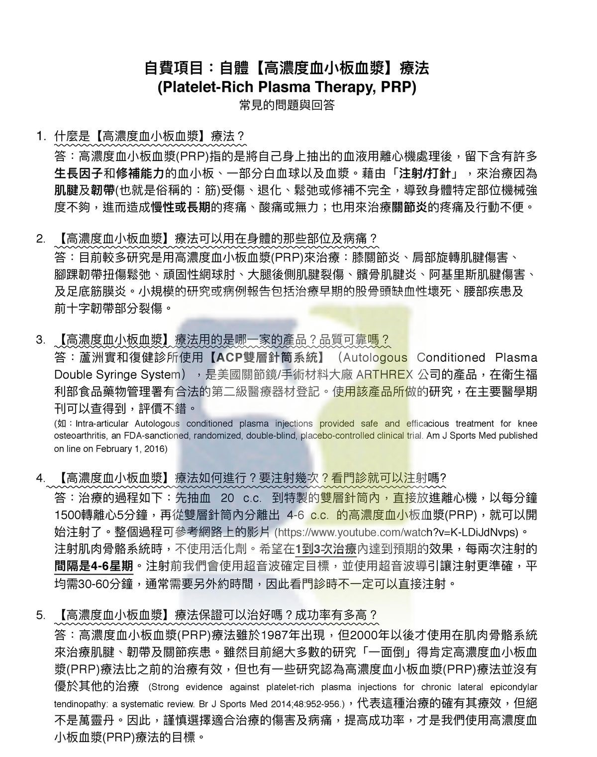 自費項目:【高濃度血小板血漿】療法
